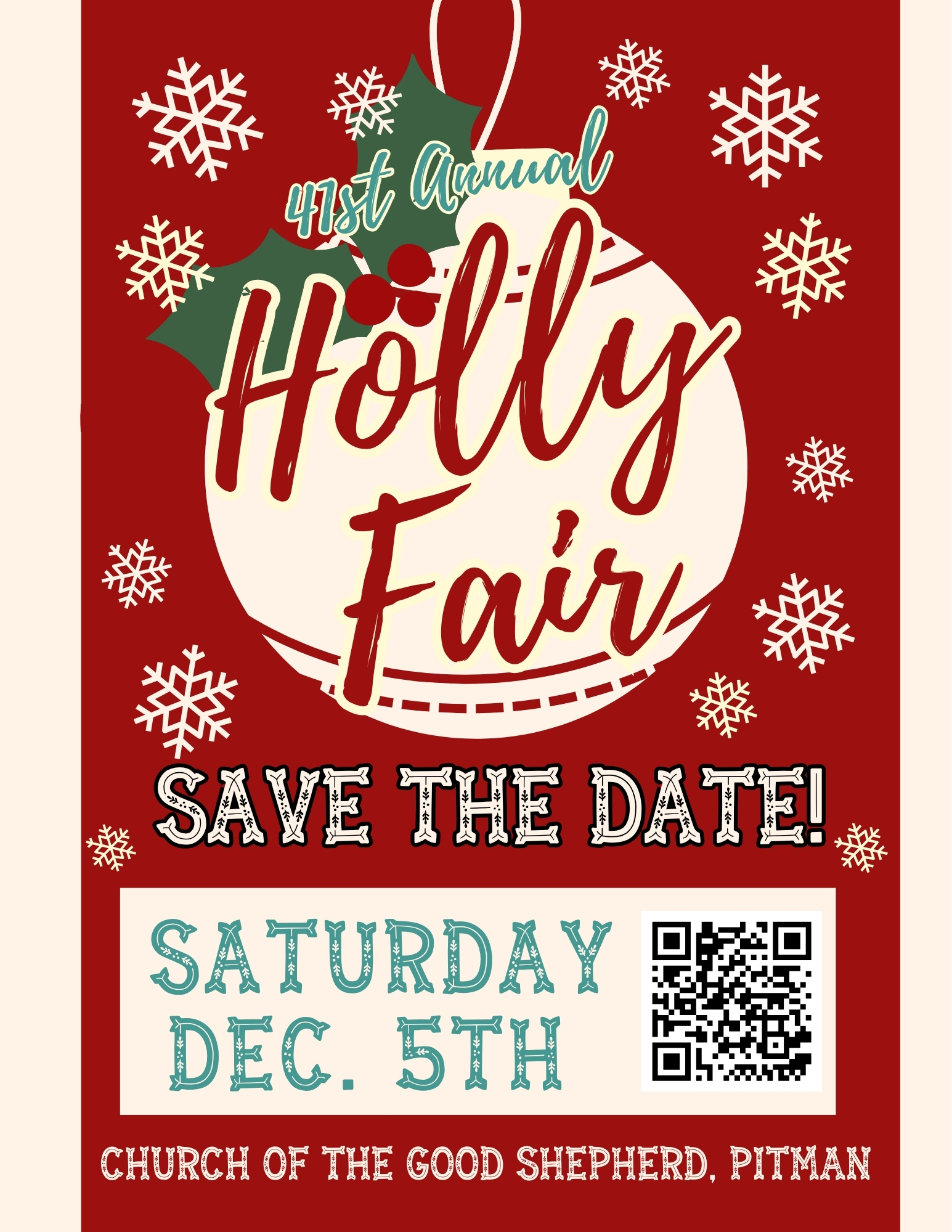 Our 41st annual Holly Fair will be on Saturday, December 5th, 2026! This event is a really special tradition amongst our parishioners and many others in the Pitman community.